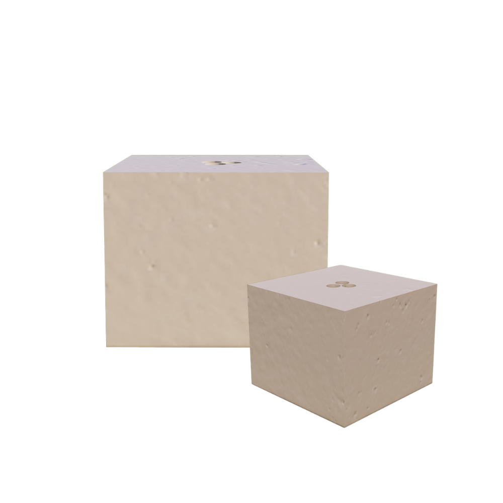 Do stworzenia kostki użyliśmy betonu B-20, charakteryzuje się mrozoodpornością, odporny na działanie wody oraz wytrzymałością na ściskanie.