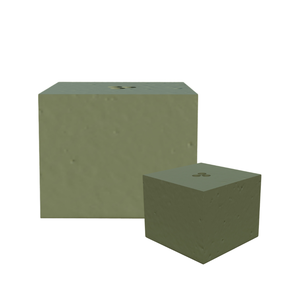Do stworzenia kostki użyliśmy betonu B-20, charakteryzuje się mrozoodpornością, odporny na działanie wody oraz wytrzymałością na ściskanie.